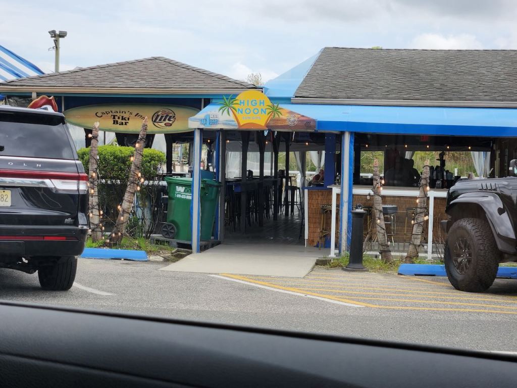 When we drove the loop at the Edwin B. Forsythe Refuge I had picked up a brochure showing some of their other birding spots. We stopped at a couple of them but we didn’t see much – that’s a house finch, some shorebirds – probably some willets and pipers, and a great egret. We drove by this Tiki Bar, but didn’t stop in.