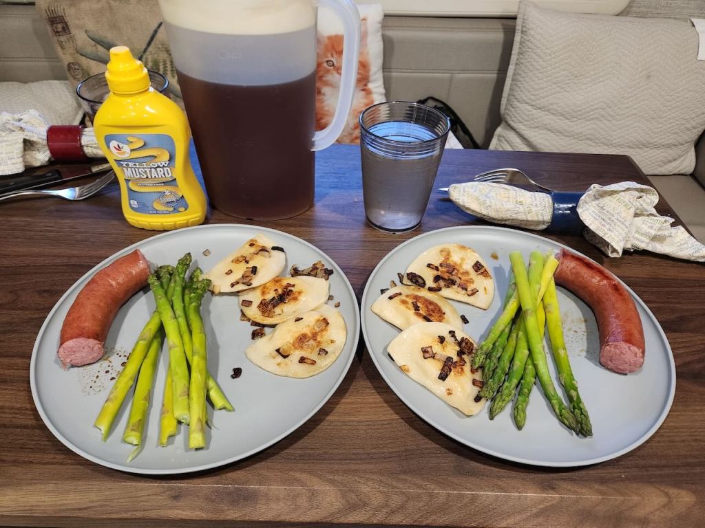 We hit a little rain on the ride back to the RV and when we got there one of the set of goslings were all huddled together. May 9th was the fifth anniversary of my mother’s passing and in her honor we had pierogies and kielbasa for dinner. That was the end of our time north of Atlantic City.