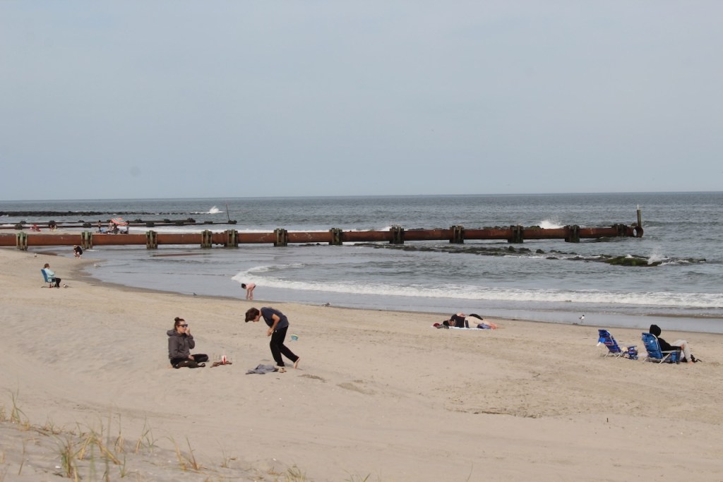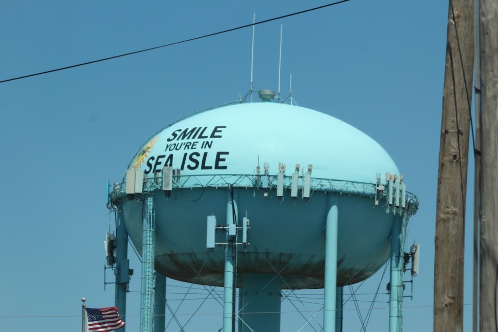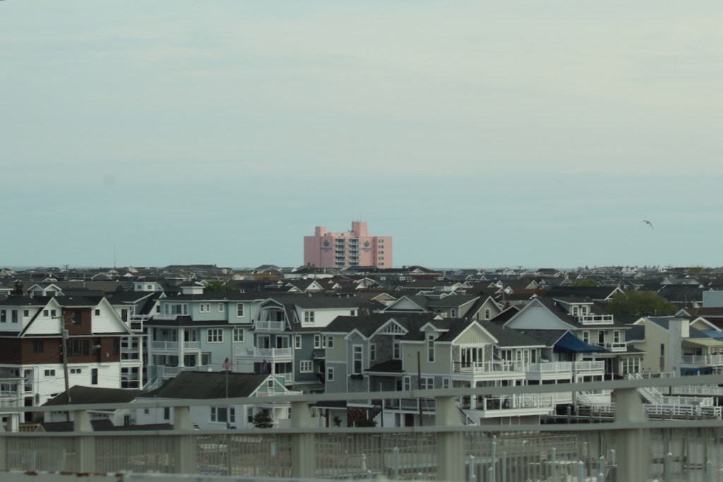 On Saturday, May 10 we moved down the Jersey shore to Cape May. We had to pick up our car before noon and check-in at the campground was not until later in the afternoon. So we parked the RV at the WalMart, did a little shopping and then took the car and drove back north to Sea Isle, where if you look closely at the photo on the right, you can see Atlantic City on the horizon.
