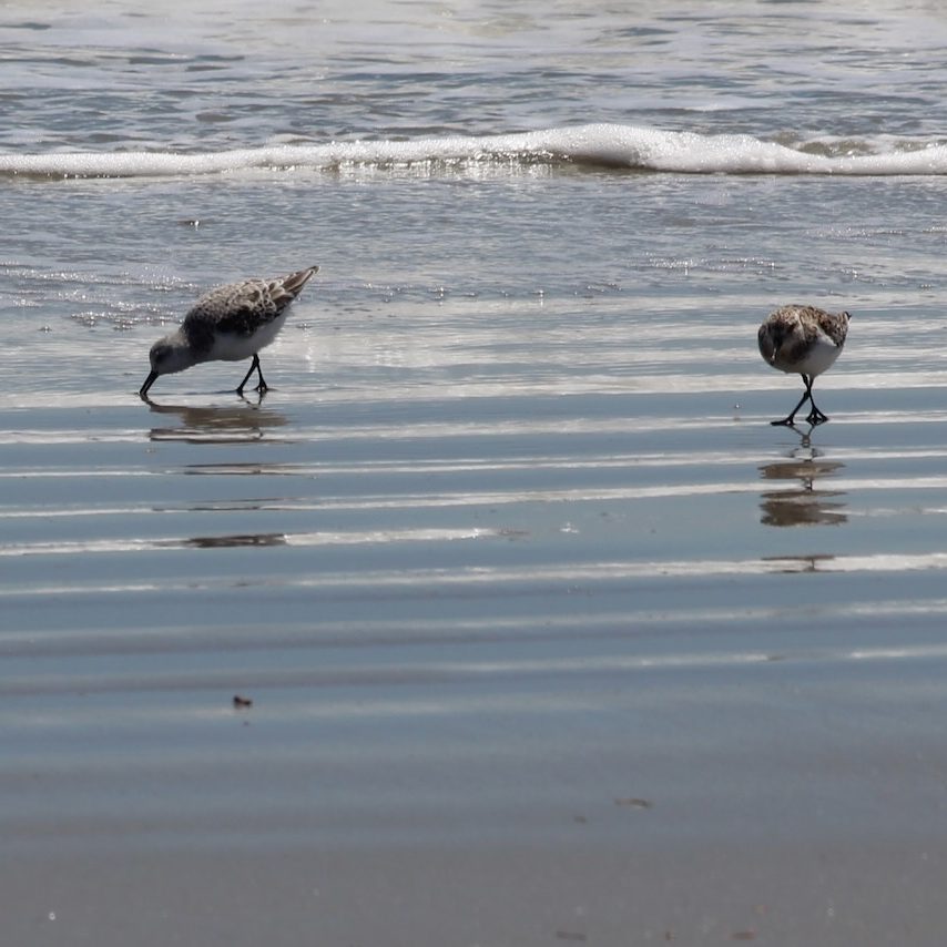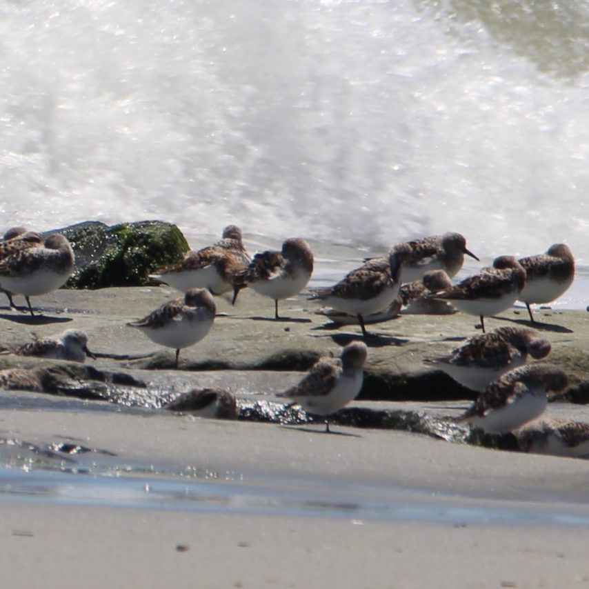 This group of sanderlings were all huddling together on one of the jetties – just out of reach of the breaking waves – and then there were some wading.