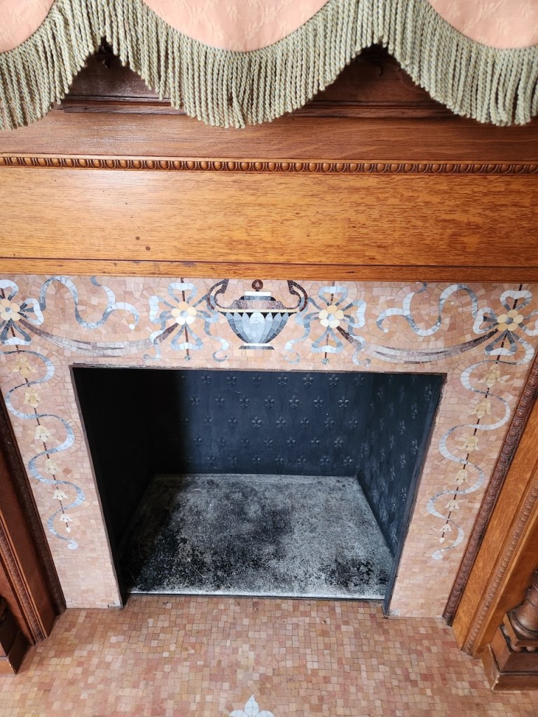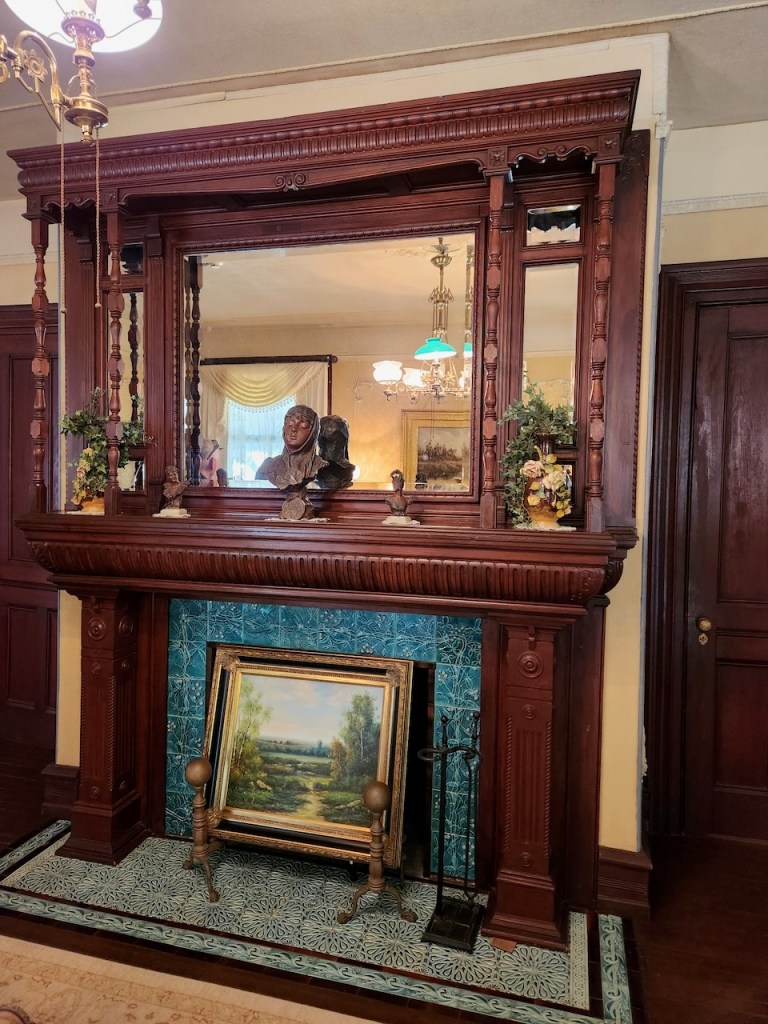 After the trolley tour, we had scheduled a tour of the Emlen Physick House. This is an 18-room mansion built in 1879 for Dr. Emlen Physick. He was the grandson of the person who invented the stomach pump and absorbable stitches. So, instead of becoming a doctor, immediately after earning his degree, he began to live off his inheritance. He never married and built this house, where he lived with his widowed mother and maiden aunt. The walls and ceiling were covered with Lincrusta – an embossed wallpaper that was made in England – yes, that was quite an inheritance. And the house actually had central heat, so the fireplaces were more for show than for heart.