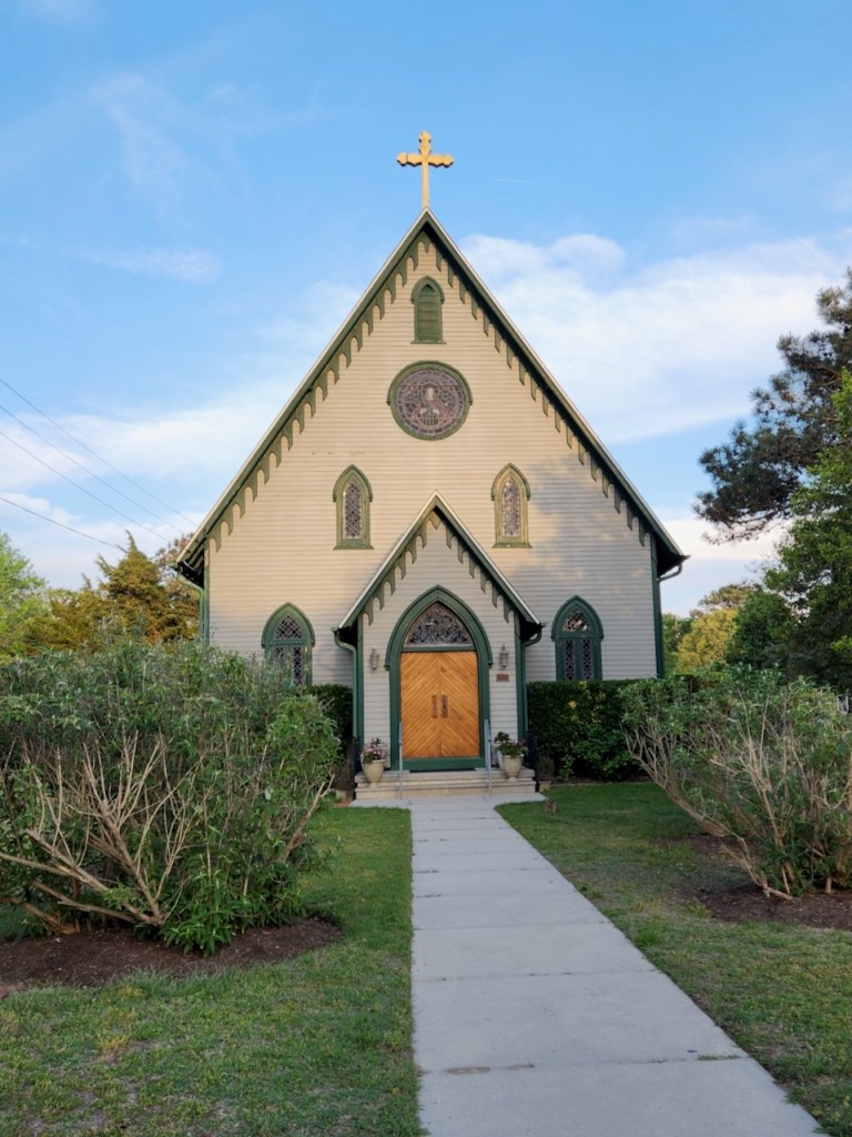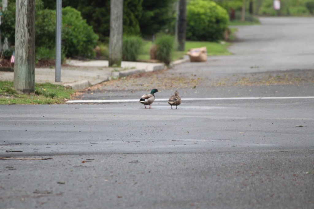The Audubon’s Spring Watch was going on at a lookout post over the beach – there were several spotters and they were counting all the birds going by. Someone is there everyday from March through May, from sunrise until noon – very dedicated! The walk was also through the streets of Cape May Point, so I snapped a picture of another one of the chapels. These mallards were just hanging out in the street, until a truck went by – and I caught this cat bird sitting in the grass.
