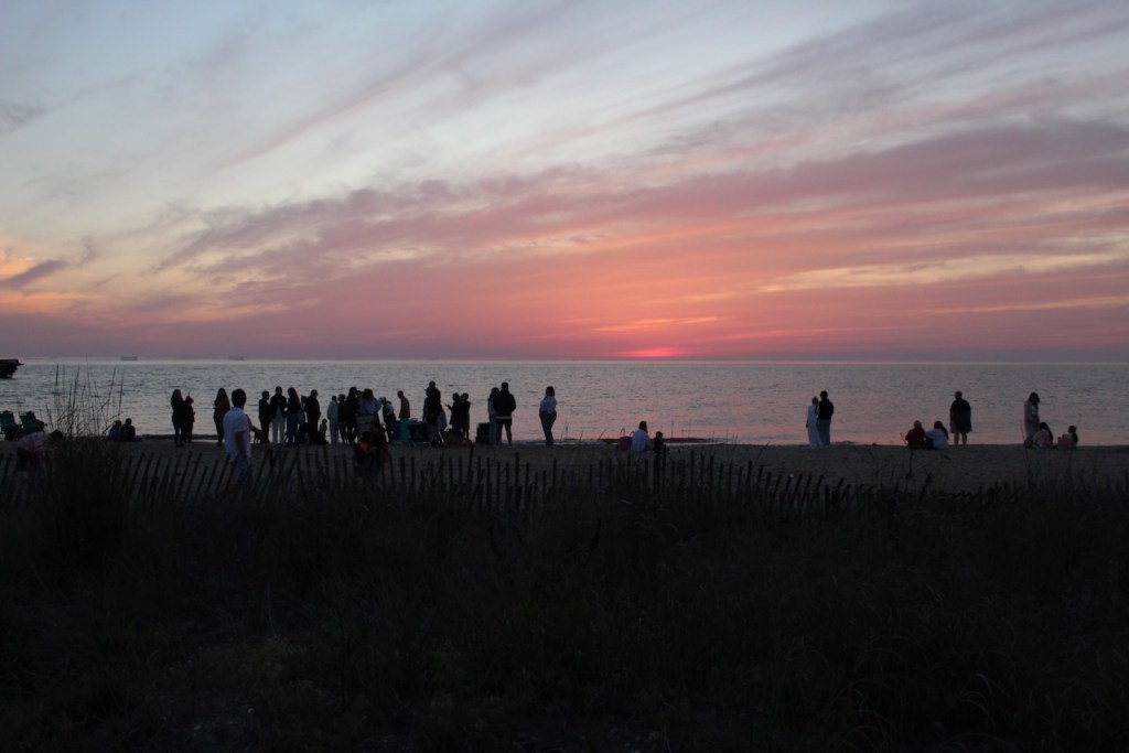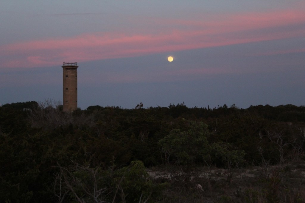 Then we went back to Sunset Beach, for a sunset! It turned out to be pretty colorful, and there were lot’s of people gathered there to watch. The picture with the tower and the moon is looking east – always remember to turn around if you are watching a sunset – you can be surprised by the colors you see in that direction. Then back to the RV for some Rummikub.