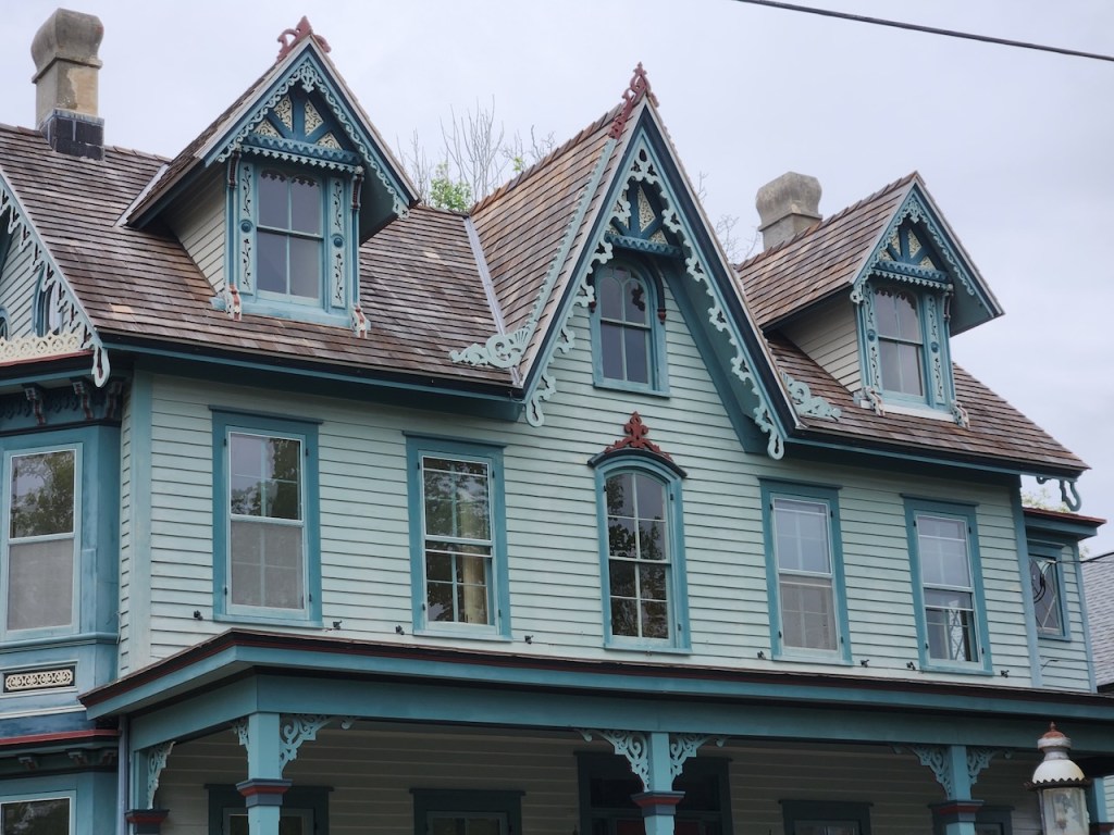 This one I do remember the name of – it is the Southern Mansion and is now a B&B. Originally built in 1863, it fell into disrepair in the 1960’s. It was bought by the woman who owns a local winery in 1996, and the rehab and renovations began. The original building was restored and the addition of more guest rooms makes it a wedding venue. We heard the if you want to get married in Cape May, you need to be planning at least three years out, and this place is probably booked four years out.