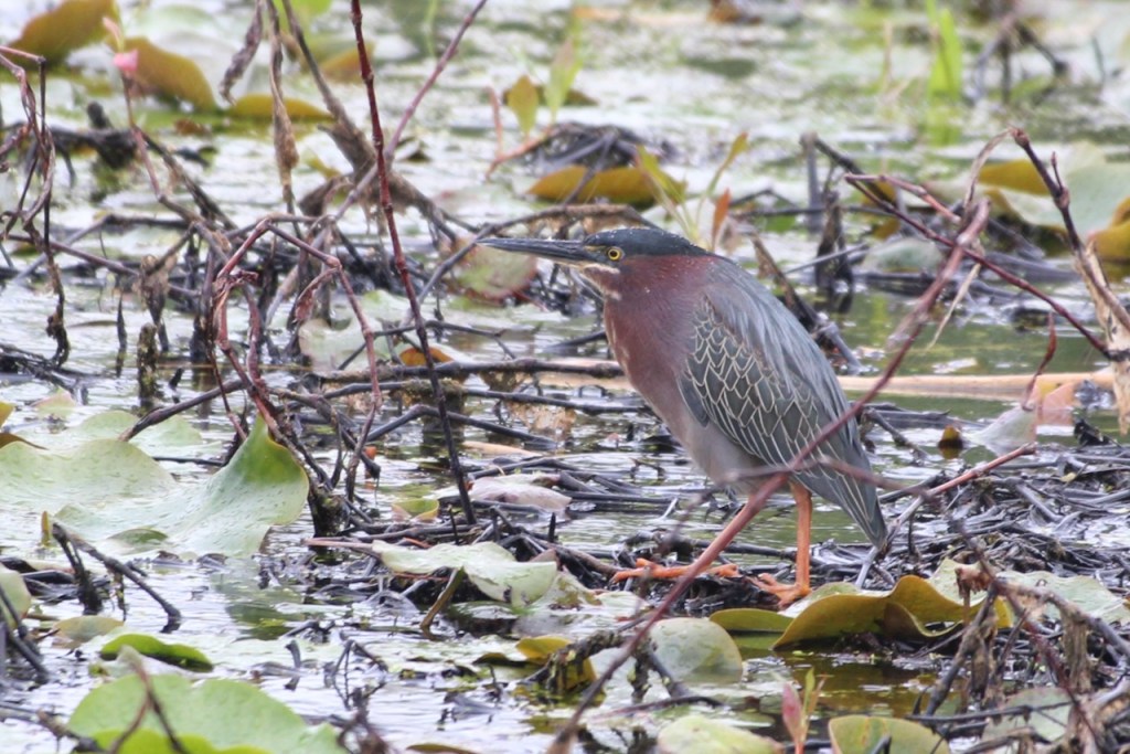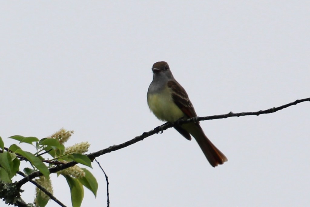 We saw the Green Heron and this Mute Swan on the lake, and a Great Crested Flycatcher. And this is where an Orchard Oriole was sitting. Trish saw it but I only got this picture of an empty branch as it flew off.