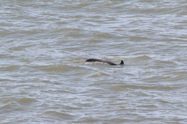 There were gulls and terns following us – I guess we were stirring up some good food. We also saw some dolphins hanging around.