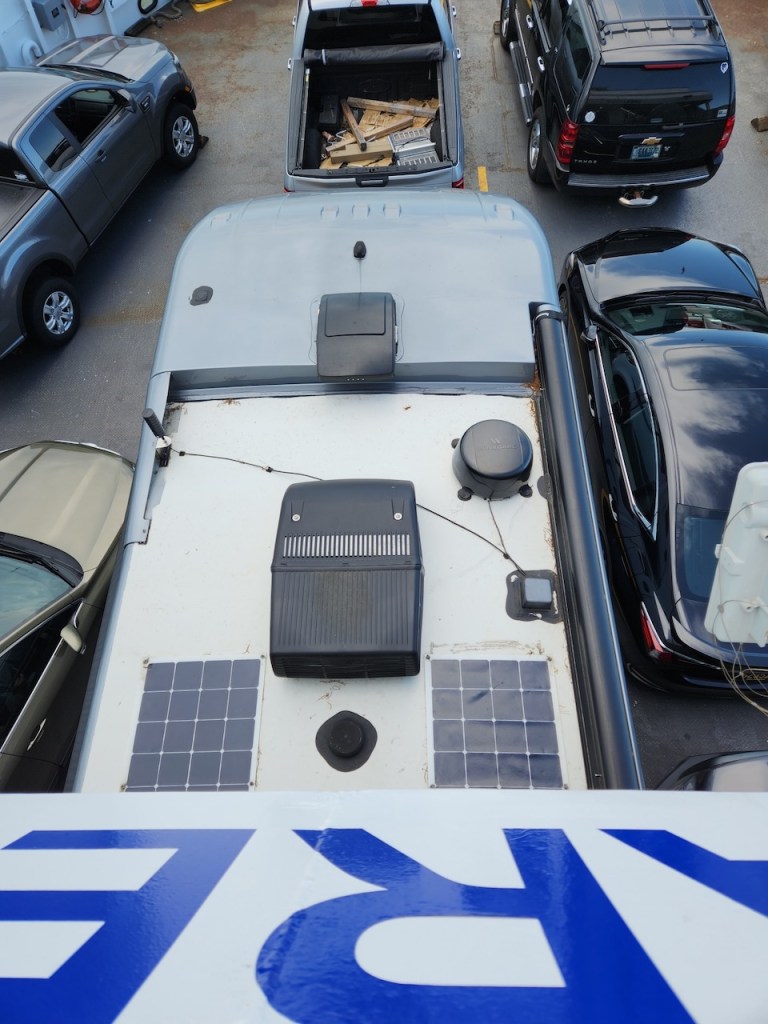 Then it was off to catch the Cape May/Lewes Ferry. As we were waiting for the ferry to arrive, I took a short walk and spotted this bird wading along the shore – I was confused until I was able to enlarge it on my screen and realized it was a starling – I’ve only ever seen them on my bird feeders and flying around fields, so this one caught me off guard. We were one of the first vehicles onto the ferry, so once we got up to a higher deck, I was able to get a good view of our roof – spotted one area where I need to clean out some leaves.